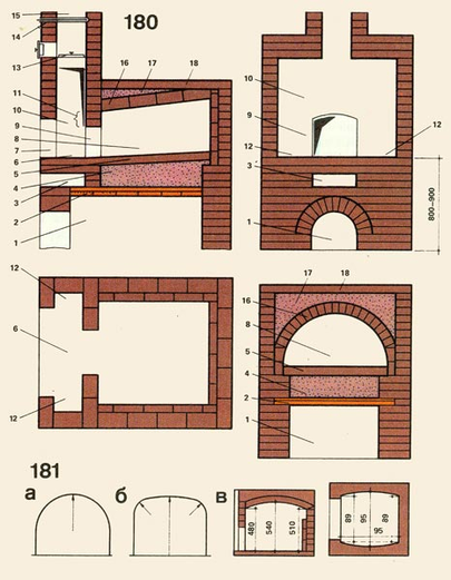 Рассмотрим детали простой русской печи без самоварника (рис. 180).