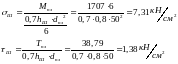 и проверяем их прочность. Для этого сначала находим напряжения в шве от изгиба и среза: