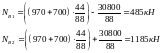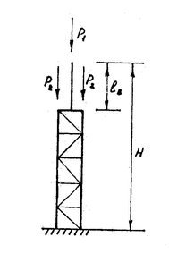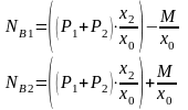 Тогда продольные усилия в ветвях колонны при действии двух сил (Р1 и Р2) определяем по формулам: