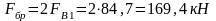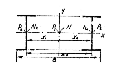 Определяем продольные усилия в ветвях колонны в момент действия трех сил (Р1, Р2, Р2) по формуле