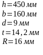 Конструктивно принимаем сечение ребра 160×12 мм, площадь двух ребер 2×16×1,2 = 38,4 см2. Назначаем толщину швов, соединяющих опорные ребра со стенкой колонны 8 мм, и из этого условия находим требуемую длину ребра по формуле: