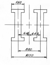 Траверса работает как двутавровая балка, нагруженная двумя вертикальными силами.