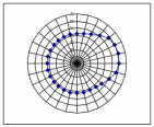 Откладываю фазовый рабочий угол . Делю этот угол на столько частей, сколько на графике. Через точки деления провожу оси толкателя во вращенном движении. Для этого соединяю точку деления с центром вращения кулачка. Вдоль осей толкателя от окружности минимального радиуса откладываю текущее перемещение толкателя в выбранном масштабе.