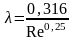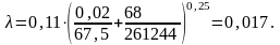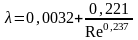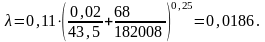 рассчитывается по формуле Блазиуса или Никурадзе: