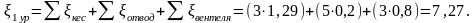 - суммарный коэффициент местного сопротивления, равный сопротивлению 6 колен кессона.