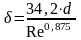 Если Re>2320,то течение жидкости турбулентное и 8-толщина подслоя (мм) будет рассчитываться по формуле: