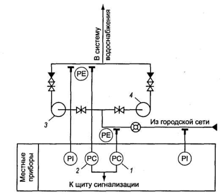 Рис. 2.4. Функциональная схема автоматизации системы водоснабжения с насосами периодического действия: