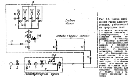 Газ поступает на электростанцию от магистрального газопровода или от газораспределительной станции с давлением 0.7 – 1.3 МПа. Газохранилищами электростанции не располагают. Для снижения давления поступающего газа до необходимого уровня у горелок 0.13 – 0.2 МПа предусматривается его дросселирование в газорегуляторном пункте (ГРП), который ввиду повышенной взрывоопасности и резкого шума при дросселировании газа размещают в отдельном помещении на территории ТЭС.