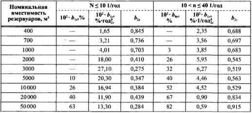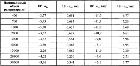 где Ьа„ bls, b2s - постоянные числовые коэффициенты, зависящие от номинальной вместимости резервуара и коэффициента оборачиваемости (менее 10 или более).