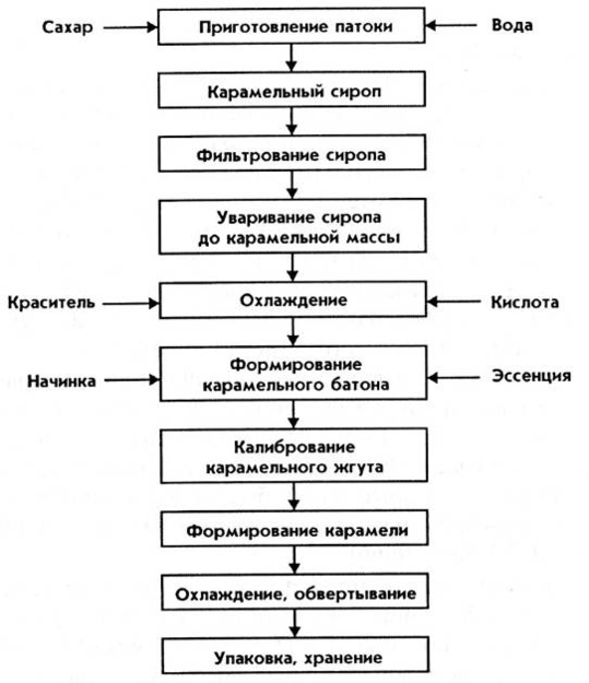 Производство карамели разделяется на следующие стадии и операции: