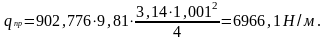 Определяем нагрузку от веса нефти, находящегося в трубопроводе единичной длины по формуле (3.5.19)