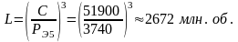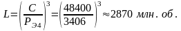 Расчётная долговечность, млн. об.