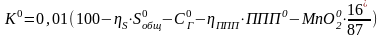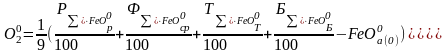Для решения уравнения материального баланса (4.1) рассчитываются (уравнения 4.2 и 4.3) средневзвешенные, коэффициенты выхода обоженной массы из сухой массы каждого компонента шихты (К0) и средневзвешенный прирост (+) или потеря (-) массы от окисления или восстановления оксидов железа (О20).
