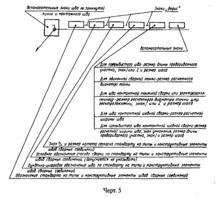 Структура условного обозначения стандартного шва или одиночной сварной точки приведена на схеме (черт. 5).