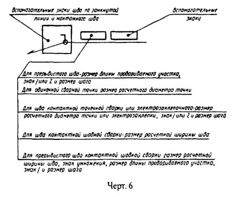 Структура условного обозначения нестандартного шва или одиночной сварной точки приведена на схеме (черт. 6).