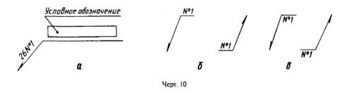 а) на линии-выноске, имеющей полку с нанесенным обозначением шва (черт. 10 а);