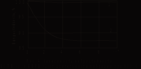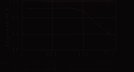 Как видно из рис. 3, вата БСТВ имеет высокую виброустойчивость, которая при 900 °С составляет 99,65 % [6]. Виброустойчивость определяется прежде всего длинноволокнистой структурой ваты, а также характером кристаллизации, обусловливающим достаточное сохранение эластичных и прочностных свойств ваты. Вследствие этого вата БСТВ при вибрации не разрушается. Базальтовая вата БВРВ того же состава, что и БСТВ, имеет меньшую вибростойкость. Потери в ее массе при 3-часовой вибрации в исходном состоянии равны 2 % и до 500 °С не изменяются. При дальнейшем повышении температуры до 900 °С потери в массе ваты резко возрастают и достигают 12%.