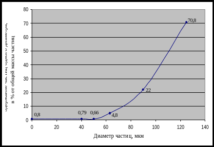 Рис.6. Распределение частиц измельченной базальтовой ваты по размерам