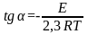 дает прямую, тангенс угла наклона которой к оси абсцисс позволяет вычислить энергию активации процесса, а отрезок отсекаемый на оси ординат - предэкспоненту[37].
