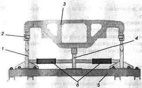 Рисунок 8.23 — Электромагнитное намагничивающее устройство МСН 32: 1 —полюсный наконечник; 2—ловитель; 3—боковая рама; 4 — стойка магнитопровода; 5—основание; 6—электромагниты