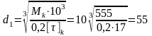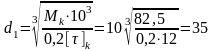 [τ]к=17 Н/мм2 - допускаемое напряжение на кручение (большие значения [τ]к берутся для тихоходных валов).