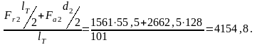 lт=101 - расстояние между точками приложения реакций в опорах вала-колеса,мм.
