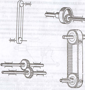 Для передачи вращения параллельным валам, находящимся на большом расстоянии друг от друга, используют ременные и зубчато-ременные передачи. Для передачи вращения параллельным валам, находящимся на малом расстоянии друг от друга, используют цилиндрические косозубые и прямозубые передачи с внешним и внутренним зацеплением (рисунок 2).