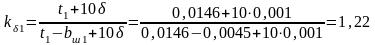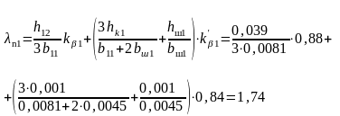 kш1 = (1 – 0,033) · b2ш1/t1 · δ = (1 – 0,033) · 0,00452/ 0,0146 · 0,001 = 1,34