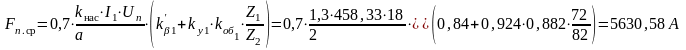 То же с учетом насыщения. I'2нас ≈ I1нас = I1 · kнас = 458,33 · 1,3 = 595,83А, где kнас – коэффициент насыщения, предварительно выбирается в пределах: kнас = 1,25 ÷ 1,4. Средняя МДС обмотки, отнесенная к одному пазу статора.