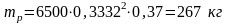 Принимая, что ротор асинхронного двигателя представляет собой сплошной цилиндр с плотностью 8300 кг/м3, его массу можно определить по формуле: