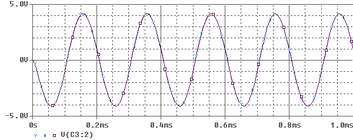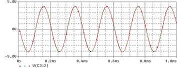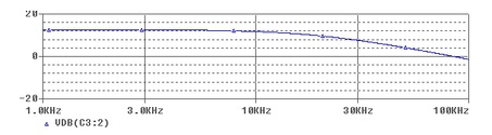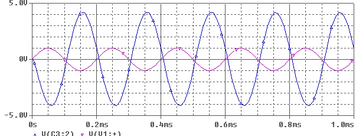 В результате моделирования выяснилось, что коэффициент усиления получается 4,1, что близко к рассчитанному значению.