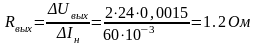 2) Определим выходное сопротивление (внутреннее сопротивление стабилизатора). Внутреннее сопротивление стабилизатора характеризует влияние изменений тока нагрузки стабилизатора на его выходное напряжение и определяется как отношение приращения выходного напряжения к вызвавшему его приращению тока нагрузки. Очевидно, что при малом значении внутреннего сопротивления стабилизатора ослабляется влияние изменений тока нагрузки на стабилизированное напряжение.