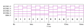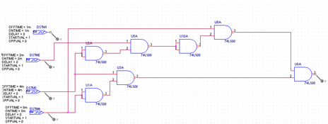 Cоставим модель преобразователя в системе OrCAD (Рис.3.3) и произведём моделирование. Результатом моделирования является диаграмма логических состояний (Рис.3.2), подтверждающая адекватность синтеза КЛУ.