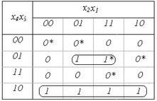 Рис.3.1 Карта Карно для заданной таблицы истинности 0* и 1* - добавленные произвольным образом значения функции Y