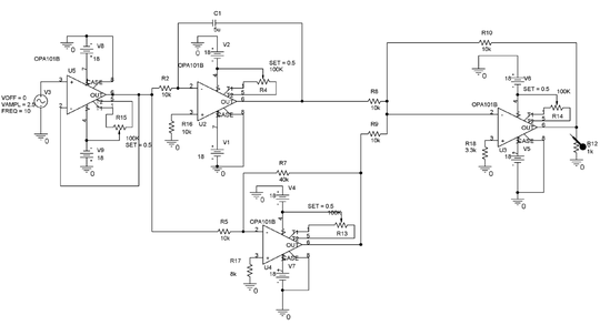 Требования к ОУ: напряжение питания UП > 18B, выходной ток Iвых > 12мА, скорость нарастания не важна (низкие частоты), по возможности малое напряжение смещения, малые токи смещения. Выберем ОУ OPA101В – операционный усилитель со входами на полевых транзисторах с p-n переходом, прецизионный.