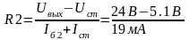 Сопротивление выбираем из ряда Е24 R2 = 1кОм