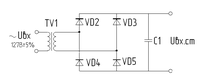Рис.4.3 Мостовой выпрямитель и сглаживающий фильтр (С1)