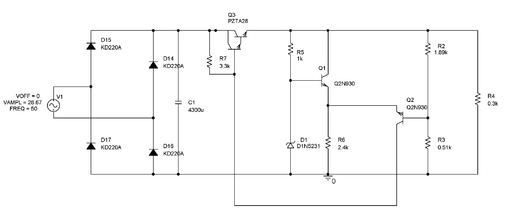 По выбранным элементам составим модель источника питания в системе OrCAD(Рис4.4) и произведём моделирование