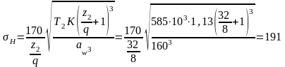 | 12 | Расчетное контактное напряжение, МПа | 191 | |