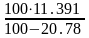 = 100∙[(2,14∙0,72 + 1,032∙0,45 + 2,061∙0,04) + 0,01∙(0,4∙94 + 0,63∙83,7 + +7,94∙95,5 + 0,13∙97,0)] / [100 – 20,78] =