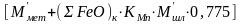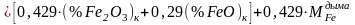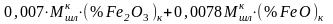 При (%FeO)к = 13,86 %, и основности 3,4 :