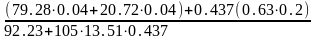 = [(79,28∙0,5 + 20,72∙0,25) + 0,775(0,63∙9,4)] / [92,23 + + 20,78∙1,74∙13,51∙0,775] = [44,82 + 4,59] / 470,8 = 0,104 %
