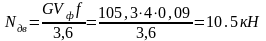 Необходимая при рабочем режиме мощность двигателя: