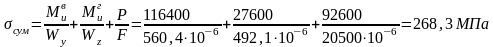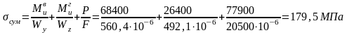 где σсум – суммарное напряжение от изгиба и растяжения-сжатия