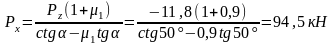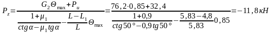 Рx = Z2Θmax + Ри = 64,2 . 0,85 + 34 = 87,9кН