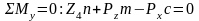 ∑Y = 0: Y1 – Py – Y2 = 0;