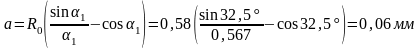 где R0 = 0,58мм – средний радиус кривизны сечения отвала