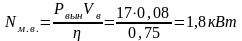Nг = Nм.в.+ Nв.о.+ Nп+ Nг = 1,8 + 1,1 + 0,21 + 1,8 = 4,91 кВт