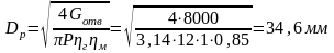 где Рн = 1,05*10 = 10,5МПа – номинальное давление насоса