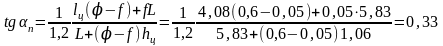 tgάп = 0,5b/1,2hц = 0,5 . 2,0/1,2 . 1,06 = 0,79